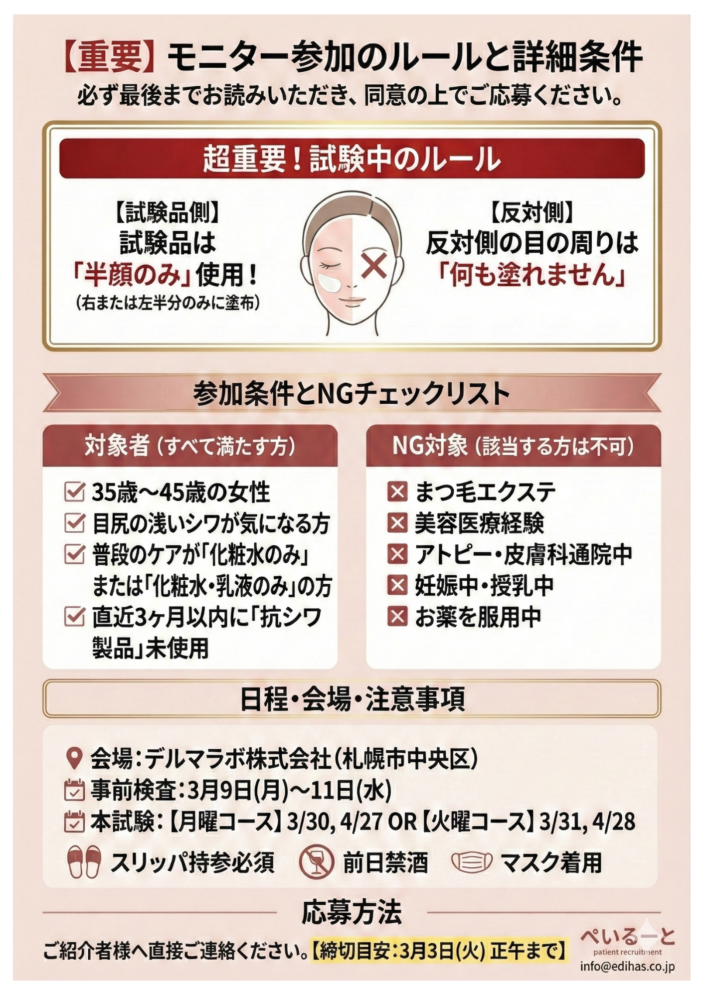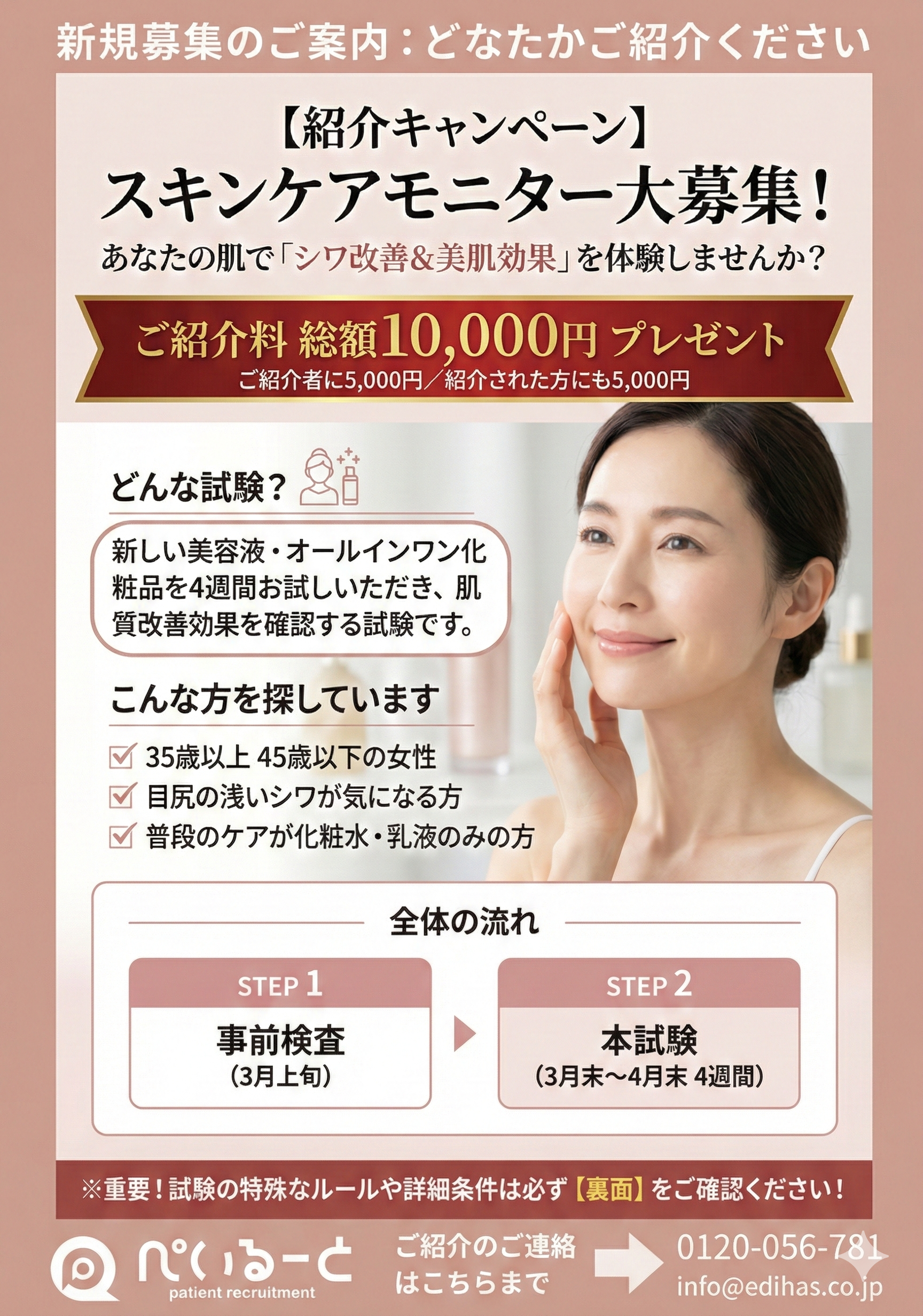 『浅いシワが少しあるかな?』程度でご参加いただけるモニターです。